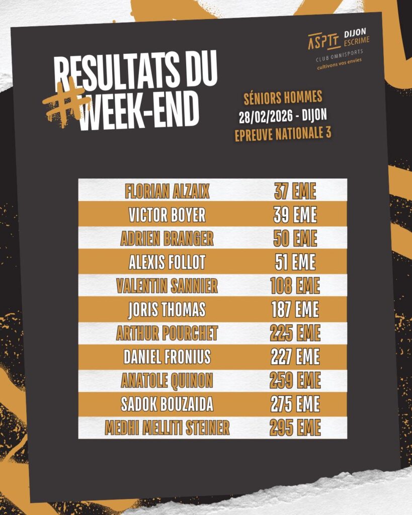 À Dijon, où nous organisions l’épreuve nationale, nos garçons ont brillé à domicile. Quatre Dijonnais se qualifient pour la compétition principale du dimanche et terminent dans le top 50 sur 305 engagés : une très belle performance 🔥 Bravo également à tous nos autres tireurs qui ont fièrement représenté le club à la maison.